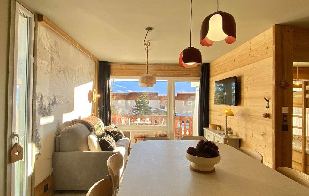 Alpe d'Huez Houses vous propose cet appartement 1 chambre entièrement rénové en 2025 avec beaucoup de goût avec un retour possible skis au pied.