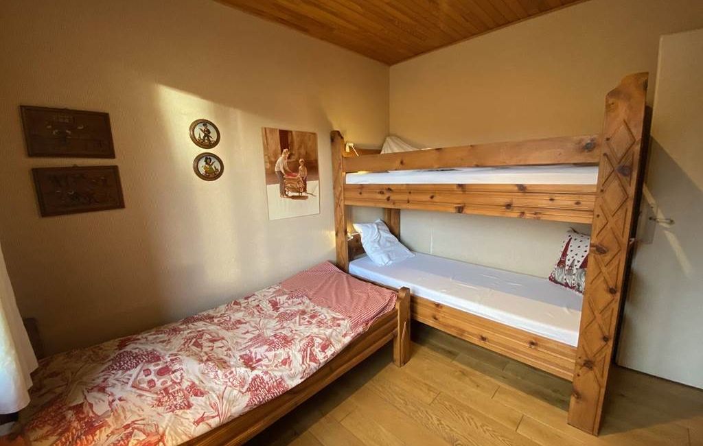 Les couchages sont bien répartis en 2 chambres, une parentale, une avec 3 lits simples.