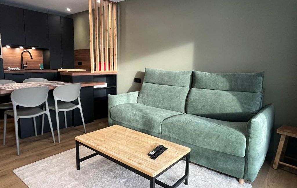 L’appartement offre une atmosphère élégante et chaleureuse grâce à des matériaux de qualité et des finitions soignées. L’orientation est idéale et permet de profiter d’un ensoleillement optimal tout au long de la journée. Depuis le séjour et la cuisine, la vue sur les montagnes est dégagée et spectaculaire, apportant une sensation d’espace et de sérénité.